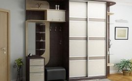 In the case of furniture, the corridor does not allow for flogging and the best option under such conditions will be a closet. Unlike the traditional cabinet with dispensary doors, it does not come out and therefore retains space in the halls. It can be purchased or commissioned using all the space from the floor to the ceiling, at the same time, in line with the general interior style. The scarf shop eliminates the need for other furniture items in the room.
